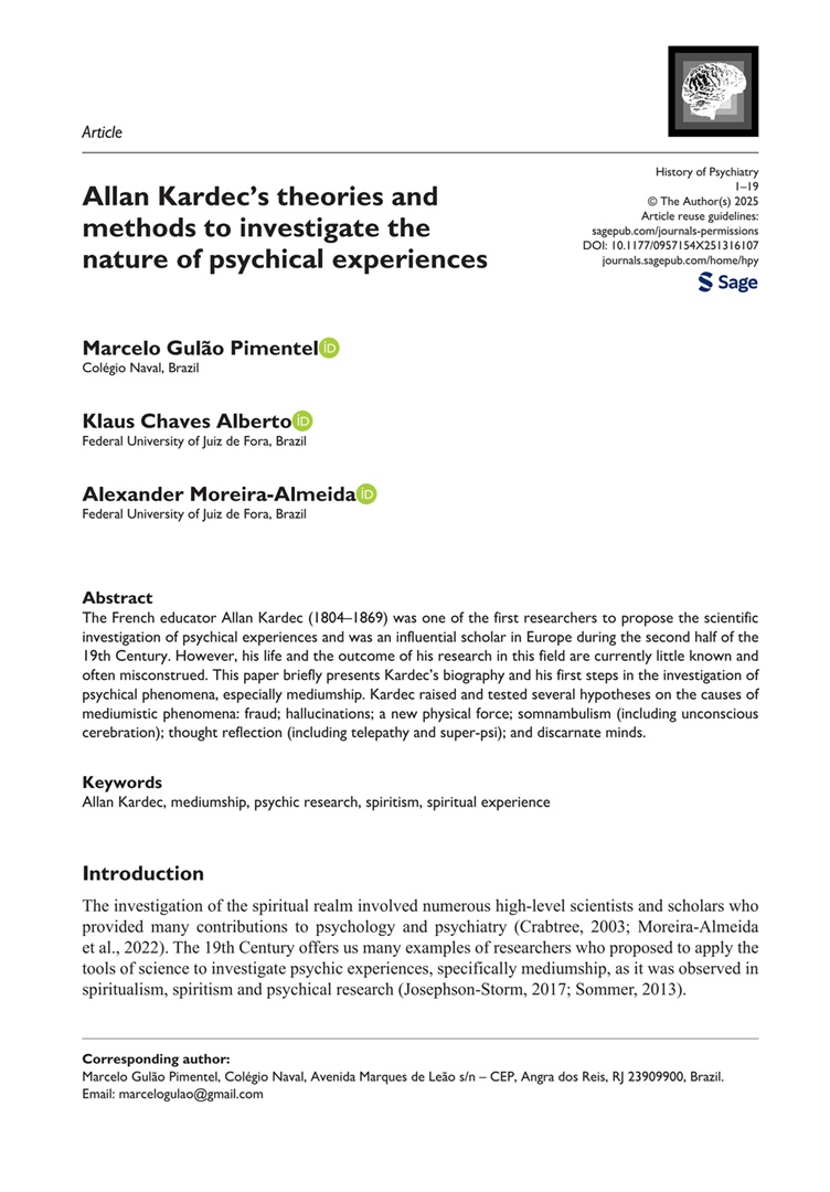 ARTIGO SOBRE ALLAN KARDEC PUBLICADO NA REVISTA "História da Psiquiatria"